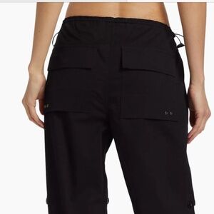 Super on-trend Danielle Guizio NYC black utility cargo pants. A go-to for lending a bit of cool to our more signature styles, they’re cut to a low-rise with classic utilitarian styling and bungee detailing at the waist and cuffs. We love wearing them with a crop top or T shirt