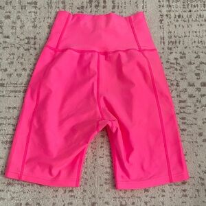 Vibrant neon pink bike shorts by Danielle Guizio. Sleek design for active comfort.