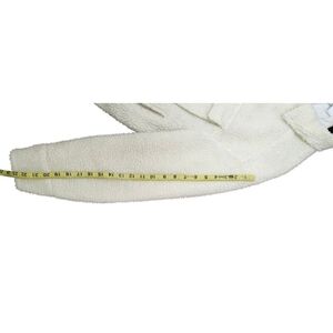 Crafted by Danielle Guizio, this Oversized Sherpa Button-Up Jacket offers a blend of comfort and style. The cream ivory hue provides a versatile base for any outfit, while the polyester outer shell ensures durability and easy care. Tailored for a regular fit in a size small, it gives the impression of a carefully structured piece, yet remains effortlessly relaxed. The jacket features an oversized design that adds a modern twist to the basic jacket silhouette, making it an ideal choice for those who value both fashion and function. Its classic button-up front and the cozy sherpa fabric offer a warm, yet refined layer suitable for a variety of occasions.