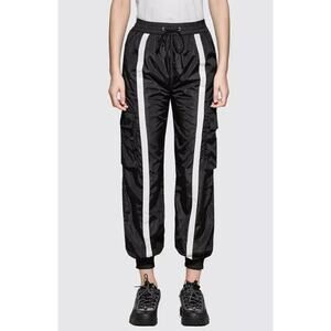 Danielle Guizio Small Striped Track Pants Joggers Nylon Black White