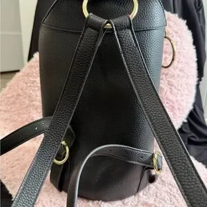 Chic black backpack with stylish gold accents. Perfect for everyday use. Durable and fashionable.