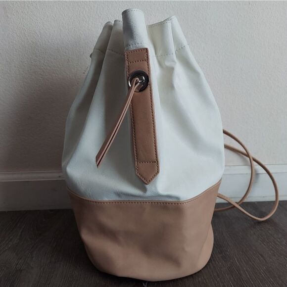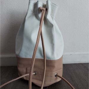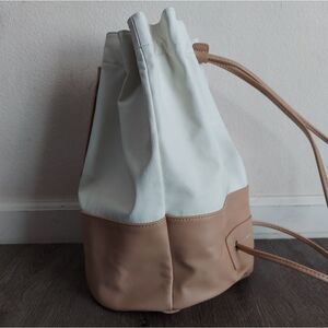 Danielle Nicole Bucket Backpack Cinch Bag in White and Tan