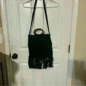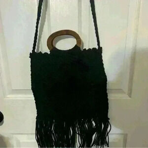 Danielle Nicole Crossbody knit, fringe, Crochet EUC wood handles