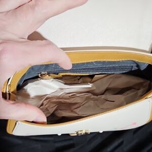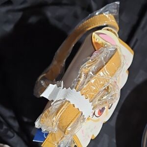 Bring a floral touch to any of your outfits with this new never used Disney crossbody bag from Danielle Nicole! Inspired by the animated classic, Bambi, the eponymous animal friend lends his look to this bag's figural appliqué, smiling as he greets a butterfly friend on the front bag flap. Decorated by beaded flower appliqués and other floral details, the gold-toned hardware, die-cut brand badge, and adjustable shoulder straps make this bag an easy-carry style to bring some springtime fashion to your look. Also features an embossed Danielle Nicole logo on the back. This charming Bambi design with floral accents is perfect for Disney fans; its both stylish and whimsical.