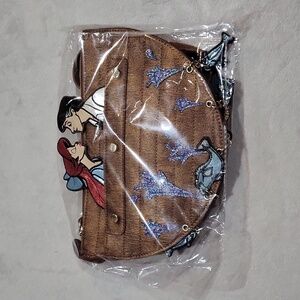 The latest from Danielle Nicole, an homage to the “Kiss the Girl” scene in “The Little Mermaid,” is an absolute delight. The crossbody bag has Ariel and Eric forever frozen pre-kiss, with Flouder and his friends dangling from the bottom of the bag and “Kiss the Girl” embroidered on the back.