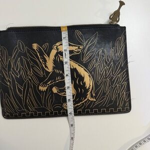 This clutch bag is number 4 of 7 and is based on Helga Hufflepuff's cup and features burnished golden hardware, a Hufflepuff cup zipper pull, and printed lining.