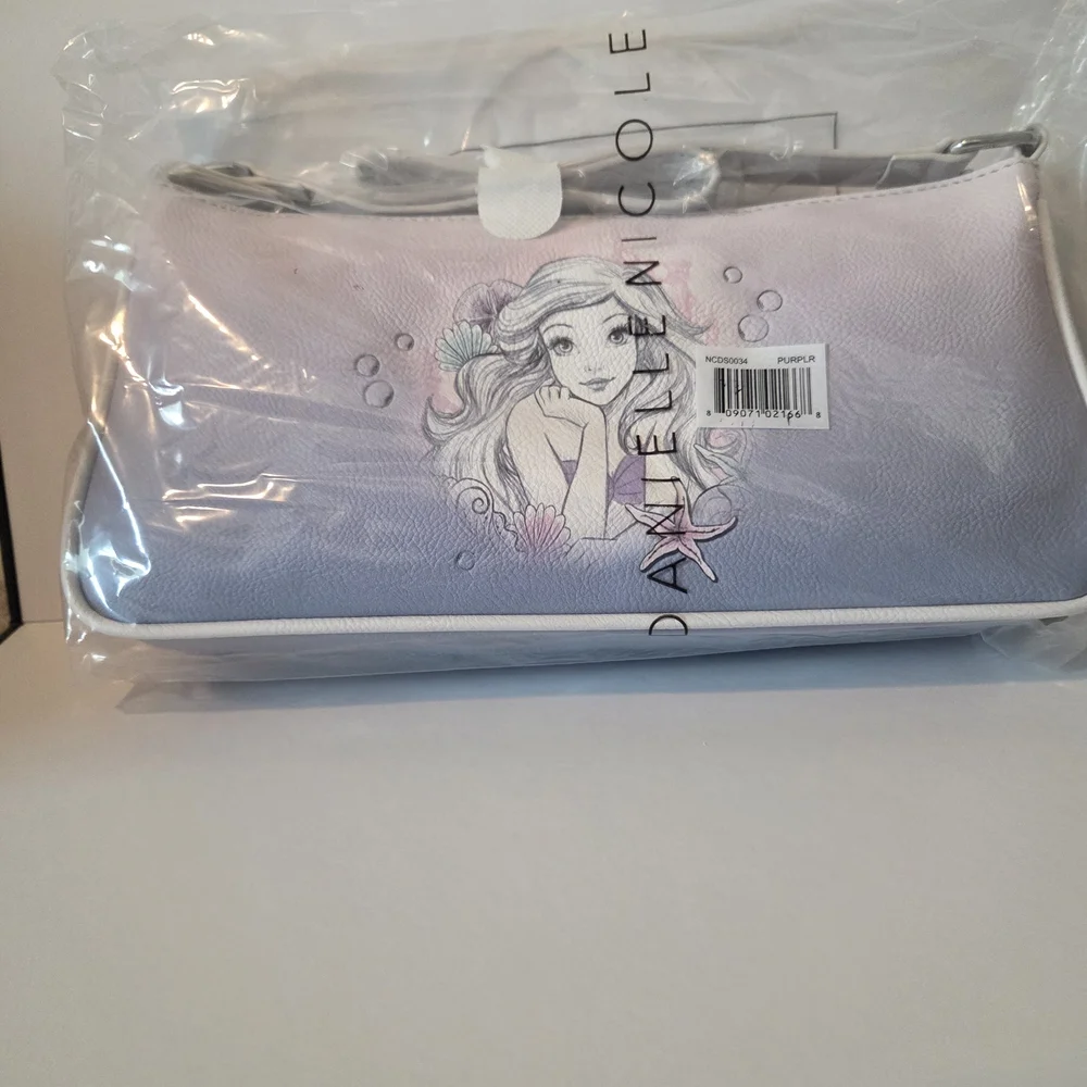 Charming lavender crossbody bag with whimsical design of Ariel