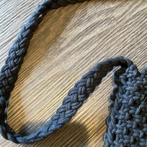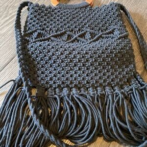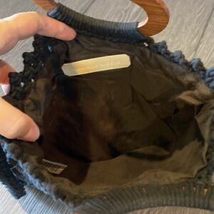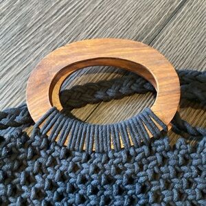Danielle Nicole Macrame crossbody bag. Black withWooden handles & Fringe Accent.