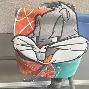 Colorful and fun backpack featuring Bugs Bunny is suitable for any hoopster. Bug’s ears are made to be straps. This flap backpack has a drawstring magnetic closure and moveable ears.