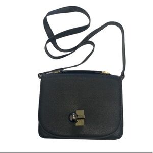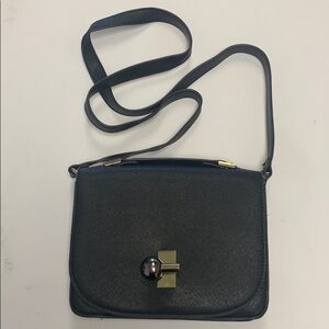 Like new condition black bag . Can be worn with top handle or strap. Only flaw is some tarnish on metal