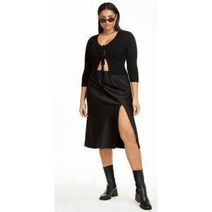 Danielle Bernstein Black Tie Front Cropped Cardigan Top Sz 2X NEW