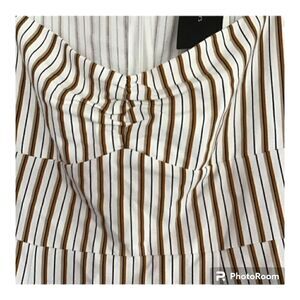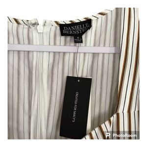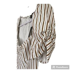 Danielle Bernstein Striped Puffy Sleeve Midi Dress