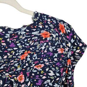 Danielrainn Navy Blue Spring Floral Split Neck Raw Hem Blouse Size 2XL