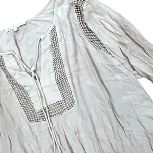 Danielrainn Oatmeal Beige Crochet Detail Viscose Blouse 3X
