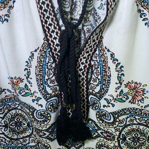 Danielrainn boho sleeveless top w/tie front tassel & embroidered neckline sz med