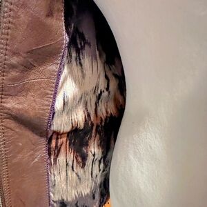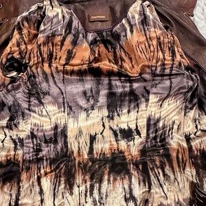 A timeless Danier brown leather jacket that combines edgy style with sophistication! Crafted from genuine leather, this jacket features a fitted silhouette, front zipper closure, and multiple zip pockets for a sleek, structured look. The versatile collar can be worn up or down, and the statement lining adds a unique touch. A must-have layering piece for any wardrobe!