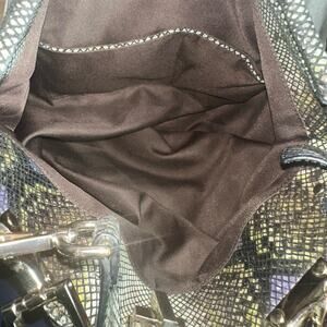 Danier Genuine Leather Python Print Satchel Crossbody Bag Gray Purple