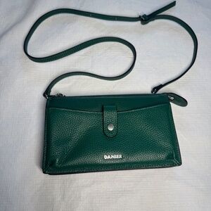 Stylish green crossbody bag by Danier. Features a sleek design with an adjustable strap. Perfect for everyday use.