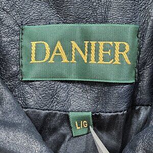 Danier Jacket Womens L Eggplant Purple Leather Pockets Buttons Lined Classic