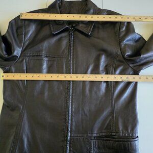 Danier Jacket Womens XL Brown Leather Pockets Zip Lined LS Classic Collar Mature