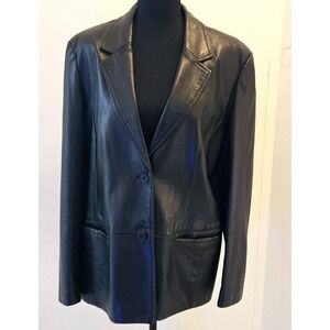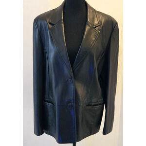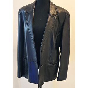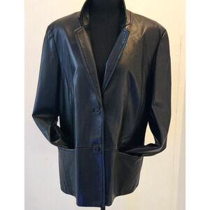 Danier Women Black Leather Notch Collar Lg Sleeve Front Button Jacket SZ 14- 16