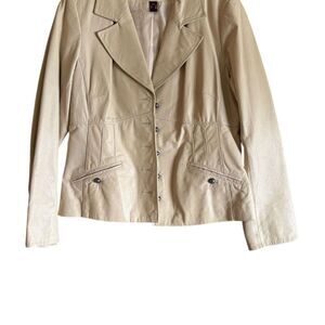 Danier Women's Ivory Leather Jacket Size L Mid-Length Casual