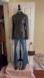 Unique Khaki Dark Green Multi Pocket Cargo leather jacket size s/m. Button front single breasted closure. Adjustable sleeve straps. Faux back pocket for design purposes. I have posted a photo of some flaws and marked them. This jacket has not been dry cleaned and may fix the issues. Please note that measurements are not exact due to manual listing. Please see attached photos for details and any flaw. Thanks for stopping by🥰