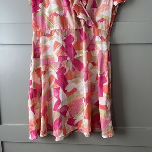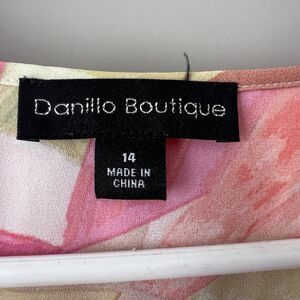 Danillo Boutique Geometric Pastel Dress Women Sz 14 Pink Flutter Sleeves V Neck