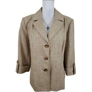Danillo ~Woman Size 16~ Beige Button Down Lined Blazer Jacket 3/4 Sleeve.