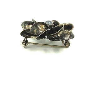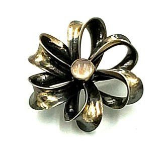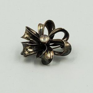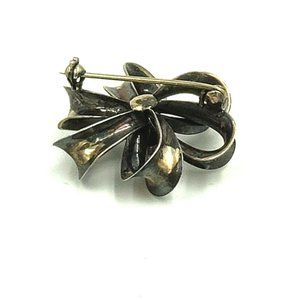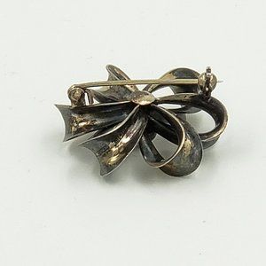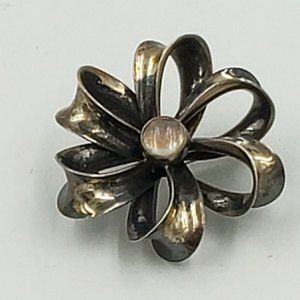 Vintage Danish sterling silver bow brooch with opalescent cabochon center.