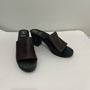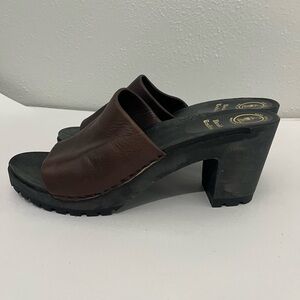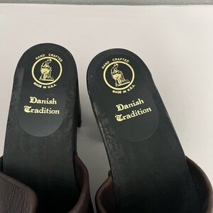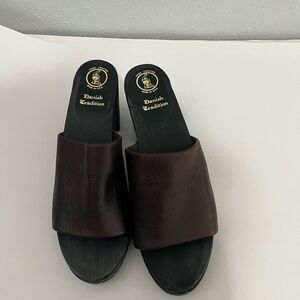 Danish tradition hand crafted clogs size 6 leather upper in very good condition brown deep leather