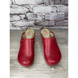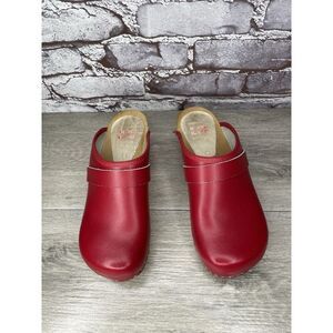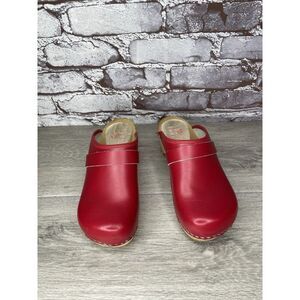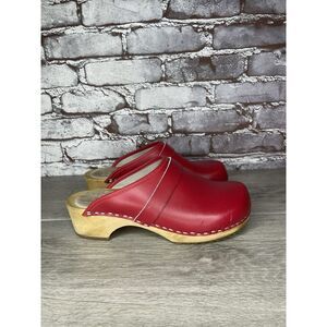 Selling Danish Design Red Leather Wooden Heel Handmade Clogs Shoes Women’s Sz 38EU/7.5M US