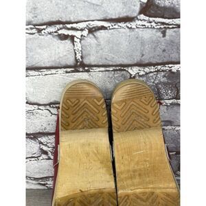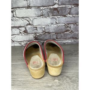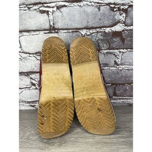 Danish Design Red Leather Wooden Heel Handmade Clogs Shoes Women Sz 38EU/7.5M US