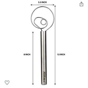 Danish Dough Whisk, 12 inch Stainless Steel Bread Whisk