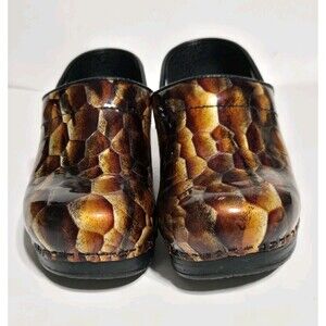 Danko Clogs Womens US 5.5-6 Tiger Eye Reptile Leather Shoes 36 Nursing Comfort