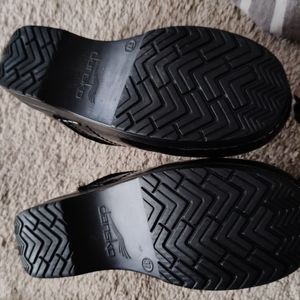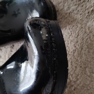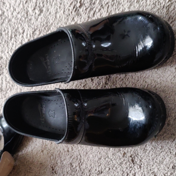 black patent leather dance co clogs size 37 have some visible wear. Alot of life left in them