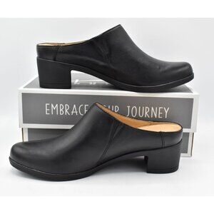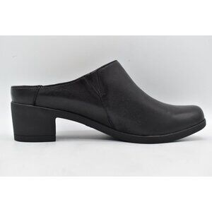 Designed for comfort and style, these Dansko heeled mules in black leather offer a professional yet versatile footwear option for work or casual settings.