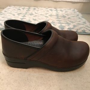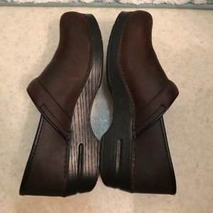 Women's dankso professional Clogs in Oiled brown leather. Size 41 (10.5-11). These have been worn maybe 5 times but are in great condition. No scratches , rips or tears. The bottom of the shoe is black.