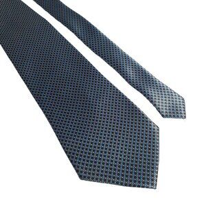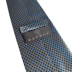 This Darmes men's silk necktie features a classic geometric pattern in blue and black, adding a sophisticated touch to formal attire. Made from high-quality silk, this tie provides a smooth texture and a refined look, suitable for business or formal settings.