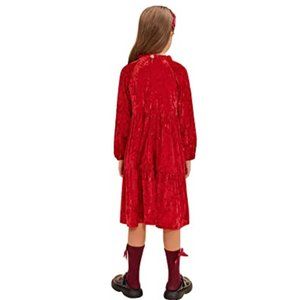 Danna Belle Girl Velvet Party Dress Crewneck Shiny A-Line Midi Dresses 5-6Years