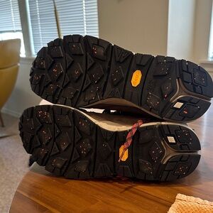 Amazing boots for cold weather. Only obvious signs of wear are on toe of the boots. Soles have very little signs of wear. Zipper makes these easy on and off. See pictures for more realistic color and signs of wear.