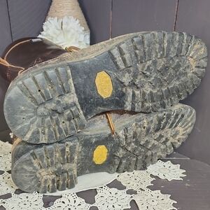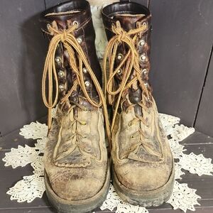 Rugged leather design. Ideal for hiking and outdoor use. Secure lace-up closure. lots of life left!! MADE IN THE USA
