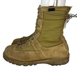 These Danner Desert Acadia boots are in used condition. They have been worn and do show very signs of wear and dirtiness (as seen in photos) but still have lots of life left in them. The boots are a men's size 12 Wide EE US, 11.5 UK or 46.5 EUR. Please let me know if you would like any further description, pictures or measurements. I am happy to help! Thanks for looking!