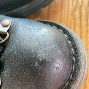 Some wearing-off and chipping of black leather polish, and although they supposedly are meticulous with picking their pieces of full grain leather during construction, I don’t see anything particularly special about it.