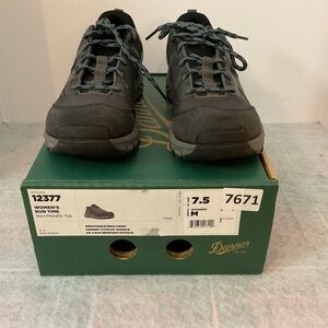 These Danner Run Time 3” Composite Toe Work Shoes were worn a few times. They come in their original box. The color is called dark shadow (gray black) and women’s size 7.5M. They are oil and slip resistant.
