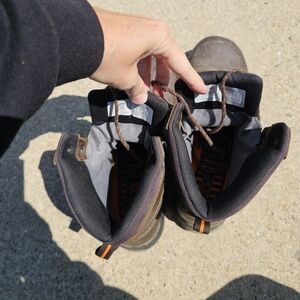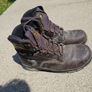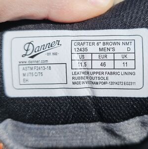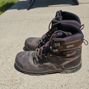 Danner Crafter 6 inch men's workboots in size 11.5. Waterproof..composite toe. These were only worn for two weeks. My husband didn't line the fit but couldn't return them because he threw away the receipt. They are scuffed up some as noted in pictures but no other flaws. Smoke-free and pet free home.