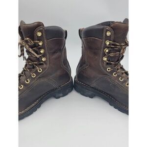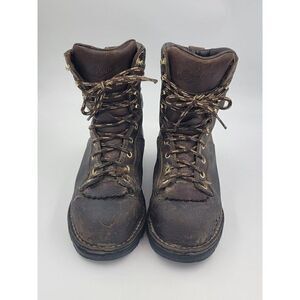 Pre-Owned Danner womens Quarry 7"h brown work boot 14540 size 6M . Flaws- some weae on toes- tear in left toe-scrarches on outside-missing graumet on on top left outer edge of shoe see pictures above.