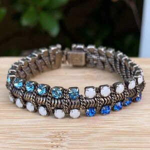 Dannijo Blue/White Crystal/Opal Giulia Chain Link Gunmetal Bracelet