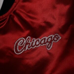 Dannijo x Chicago Bulls Mitchell & Ness Womens Large Crop Top Jacket Cut And Sew Fabric Gemstones Logo Artwork Red Black NWT
