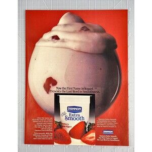 Dannon Yogurt Extra Smooth. 1st Name In Yogurt Shown In Desert Dish Vintage Print Ad 1985 Sunset Magazine About 8.5 x 11 Inches. Carefully shipped.